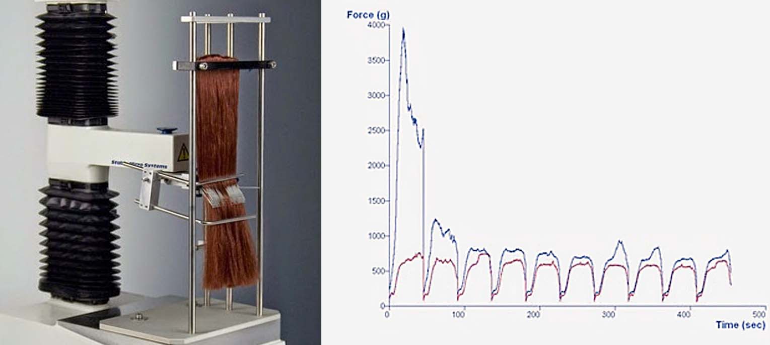 質地分析測量 頭髮梳理性 然而,當摩擦力太大,梳理性可能會受到負面影響。 眾所周知,調理洗髮水和護髮素可為頭髮提供多種益處:可降低梳理力,增強光澤,賦予頭髮平滑度和抗靜電性能,並改善頭髮管理。 |