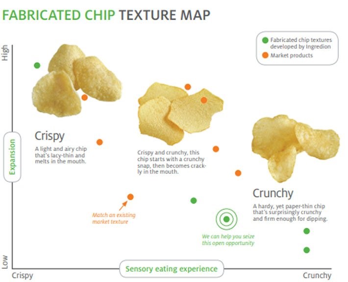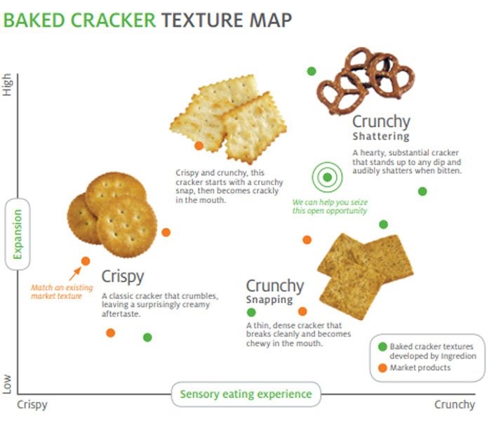 其他专业人士如何显示他们的质地数据? 质地专家Ingredion为其产品的感官食用体验和(类似竞争产品的质地)创建质地图,如下所示: |