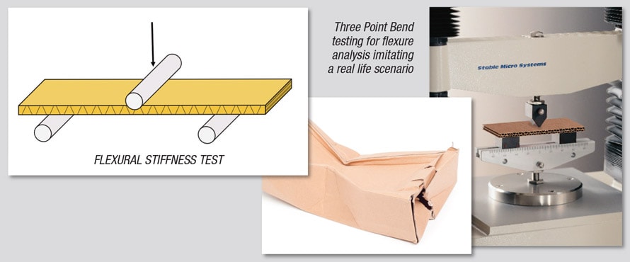 瓦楞纸箱被设计成在存储和运输期间彼此堆叠,它们承受较大的顶部载荷,特别是如果它们位于底部,当箱子以这种方式装载时,它的壁会向内或向外偏转和弯曲,这将导致应力集中在箱子的角,这意味着角在箱子的强度中起很大的作用。但是,通过确保纸板具有足够的抗弯曲刚度,可以在一定程度上控制在拐角处产生应力导致壁的挠曲:较高的抗挠曲刚度可使容器更坚固和更高的抗压强度。 弯曲刚度可以在弯曲试验中测量(例如三点弯曲),在这样的测试中,将长方体样品放在两个支架上,并使用第三个支点将载荷施加到样品中心与两个支架之间的位置。 弯曲刚度、强度和破坏变形都是从弯曲试验图中测量出来的,只要样品的尺寸测量准确。当用于预测箱子强度的公式中使用弯曲刚度,几何平均值取箱体在两个方向(垂直和平行于凹槽)上的刚度值,因为侧面在两个方向上都受到应力。 |