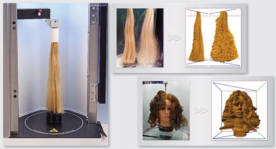 市面上销售的护发产品通常都是为了给头发提供一个健康的“本体”,同时抑制毛躁和卷曲。这些效果必须经得起科学证明。 高质量的头发必须浓密而富有弹性,具有高发量并且在转头时可以随着摆动。也可以将其定义为头发在垂直和水平方向都具有良好的水准。 在Volscan Profiler中执行头发测量,将动态测试的运动与激光测量结合在一起,并将各种测量数字灵活的与快速分析功能结合在一起。 Volscan Profiler如何测量发束体积 现在,发束可以集中支撑在仪器上臂和底座之间,从而可以自由悬挂。在扫描过程中,Volscan Profiler能够以选定的速度旋转样品(使发束张开),而垂直移动的激光绘制出张开的发束轮廓。 计算结果的3D扫描显示了由于发束制备或添加处理而产生的体积和卷曲度的测量。 用于头发特性测定的计算 因为发质和卷曲的重要性,头发样本扫描的重点在于样本如何展开有关。 l 头发样本的体积是这些参数中最基本的,可以快速估计头发。 l 扫描的表面积是经过计算的,如果头发有更多的发量和运动,扫描的表面积会更大,因为它与头发的展开有关。 l 最大投影是另一种表示头发主体的面积计算方式。该测量结果像从下方直接看张开的发束。头发在转动时进一步展开,体积就更大,并且会覆盖更大的投影面积。 l 最大投影的最大半径代表最远的头发,即头发从中心点的绝对最大移动距离。 l 卷曲度通过使用最大投影轮廓的锯齿程度来计算,并与数学上平滑的轮廓进行比较-头发越卷曲,轮廓越锯齿状。 人体模特的头部也很容易在Volscan Profiler中测量,并且可以以某些方式操纵3D扫描,以允许将不同属性或头部的不同部分分开比较。人体模型的头部测量包括全头分析,垂直半剖(比较两个不同的侧面)和顶部分析(顶部体积、顶部高和顶部面积)。 护发市场的很大一部分致力于提供可以防止卷曲的头发在压力波动或特别潮湿的环境中下垂的产品。用于证实这些声明的测试是“卷曲度保留测试”。“卷曲保留度”以设置的时间段内长度变化百分比的形式进行度量。传统上,此测量是手动测量,因此容易出现人为错误。但是,现在可以使用Volscan头发固定器固定卷发,并从生成的3D扫描中测量卷发的长度和体积。